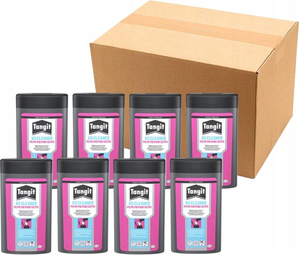 Chusteczki czyszczące Tangit służą do oczyszczania i odtłuszczania powierzchni tworzywa przed przystąpieniem do spawania tworzyw sztucznych (plastiku). Są nasączone środkiem czyszczącym na bazie alkoholu etylowego. Nadają się do tworzyw takich jak: polietylen (PE), polibuten (PB), polipropylen (PP), polifluorek winylu (PFWinyl).