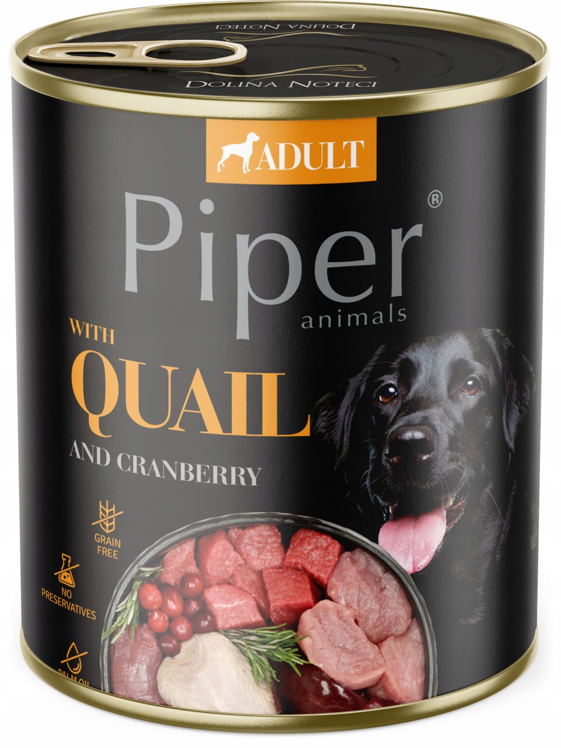 Piper Animals z przepiórką i żurawiną to pełnoporcjowa karma mokra dla dorosłych psów wszystkich ras.