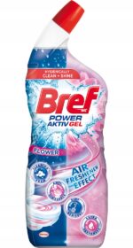 Bref Power Aktiv Gel to silny żel czyszczący do powierzchni toalety, który gwarantuje czystą i lśniącą toaletę oraz pozostawia przyjemny, długotrwały zapach w łazience.